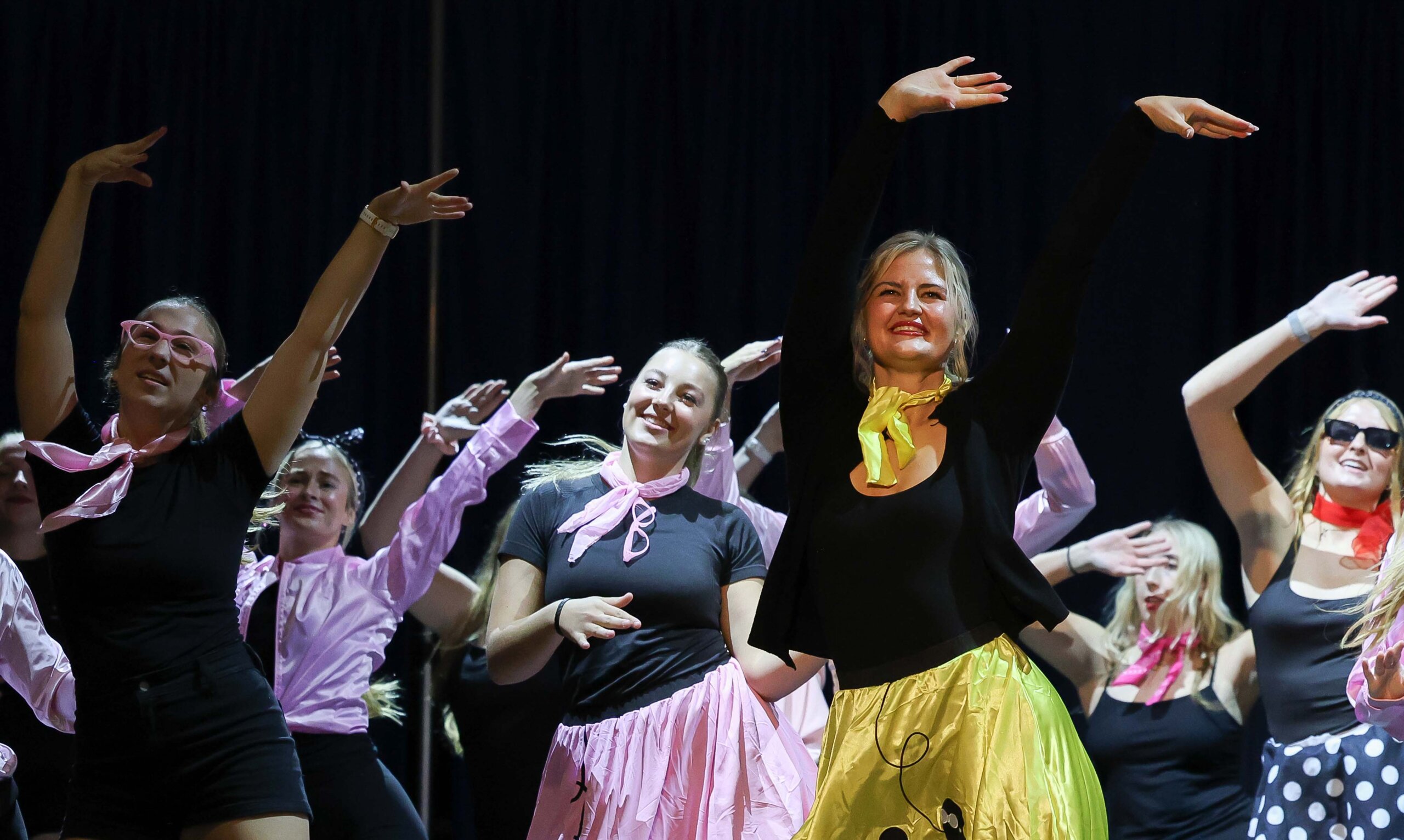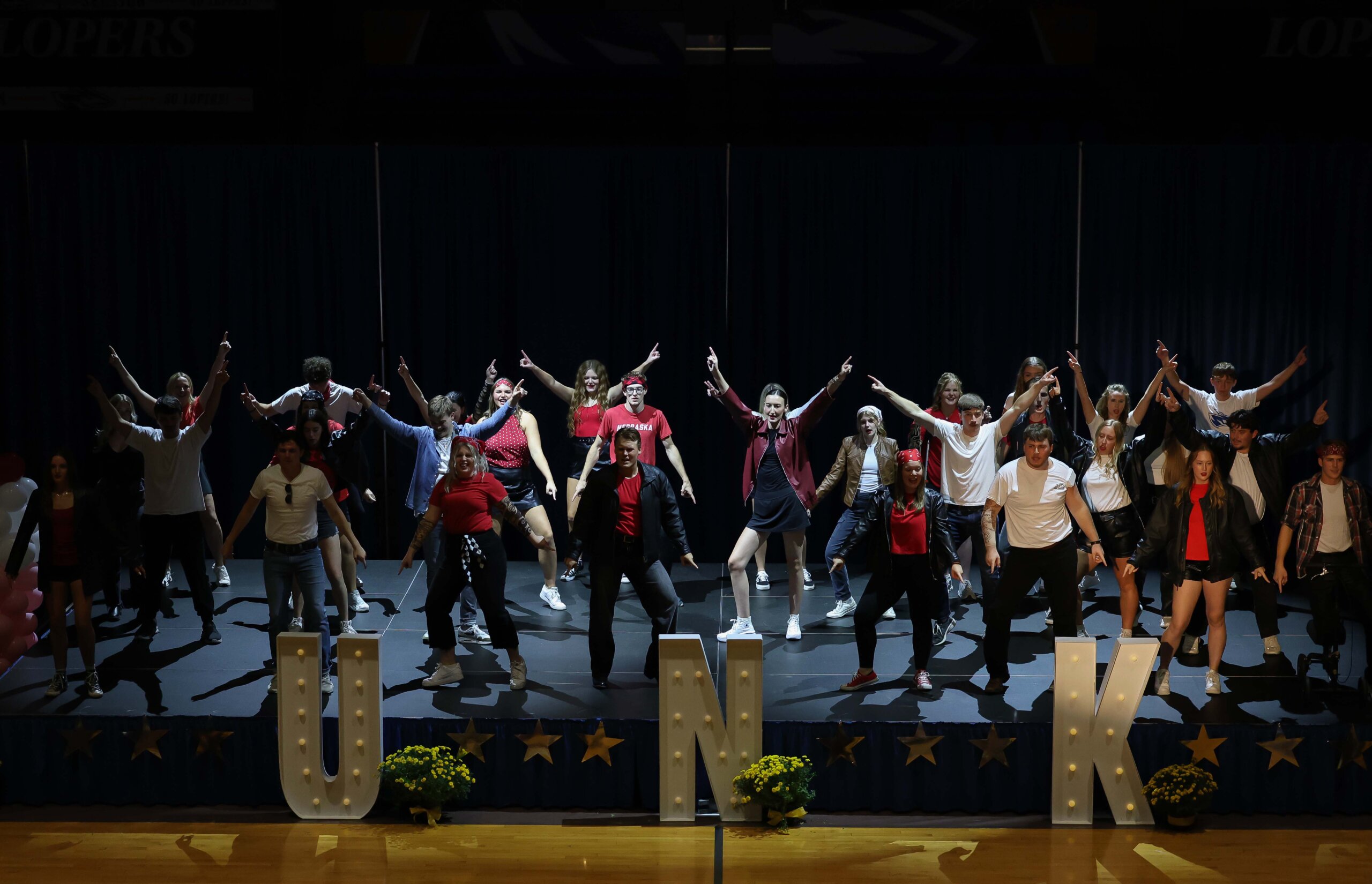UNK student organizations turned the “Louie’s Jukebox Jive” theme into entertaining choreographed dances during the lip-sync contest Thursday evening in the Health and Sports Center. Hosted by Loper Programming and Activities Council, the annual event is a highlight of homecoming week.